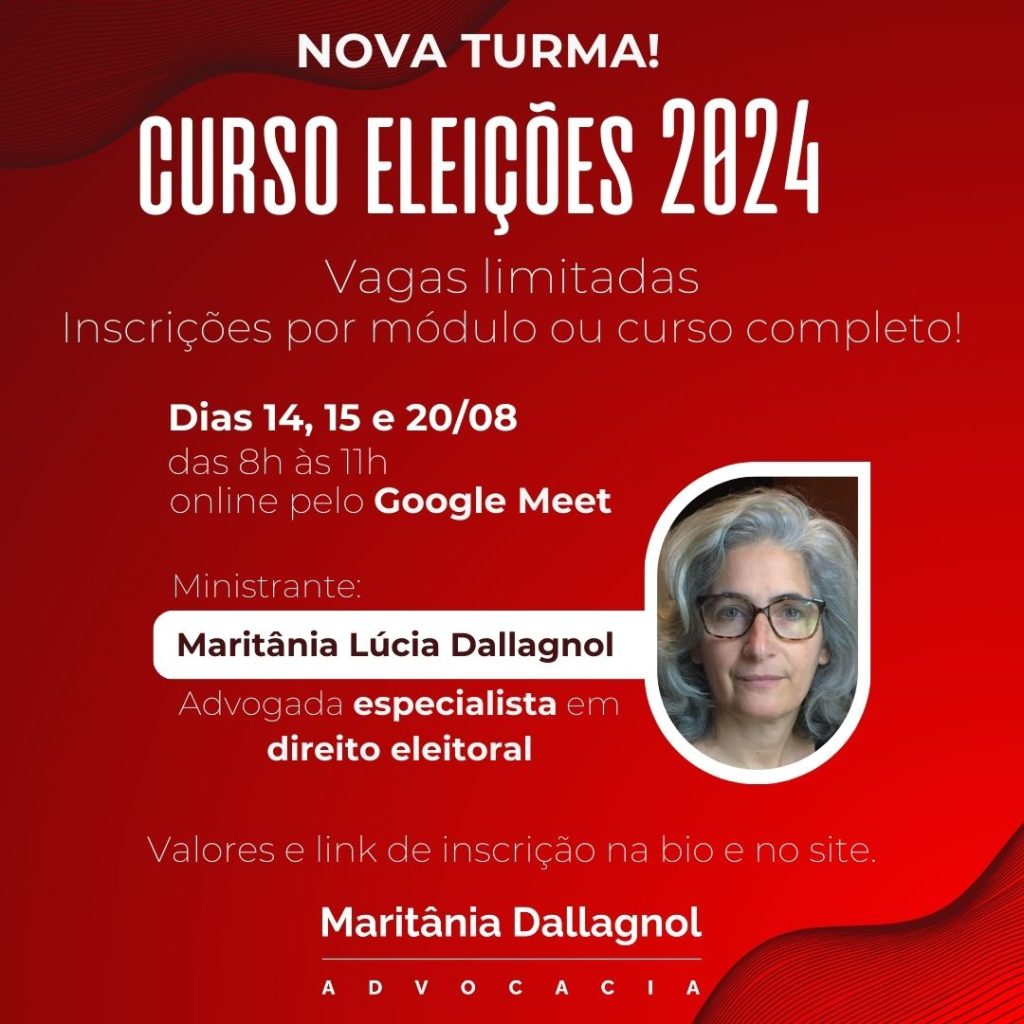 MINISTRANTE: MARITÂNIA LÚCIA DALLAGNOL: advogada (OAB/RS 25.419), com notória e reconhecida atuação nos Tribunais Regionais e Superiores; consultora em Direito Público; especialista em Direito Eleitoral; palestrante e conferencista em seminários, congressos e cursos; com artigos publicados em revistas especializadas.